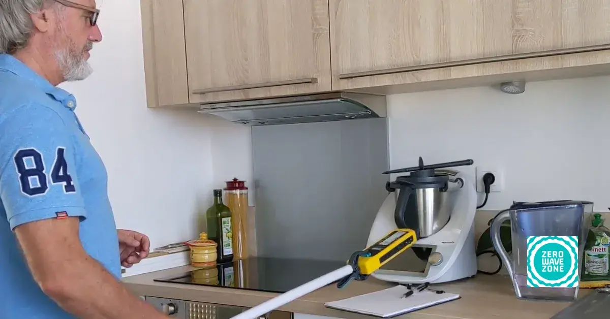 Malgré la bonne qualité de la terre de cet appartement et le cordon d’alimentation muni d’une prise avec terre, le robot génère un champ électrique très important (le maximum détecté à 353 V/m à 10 cm de l’écran).